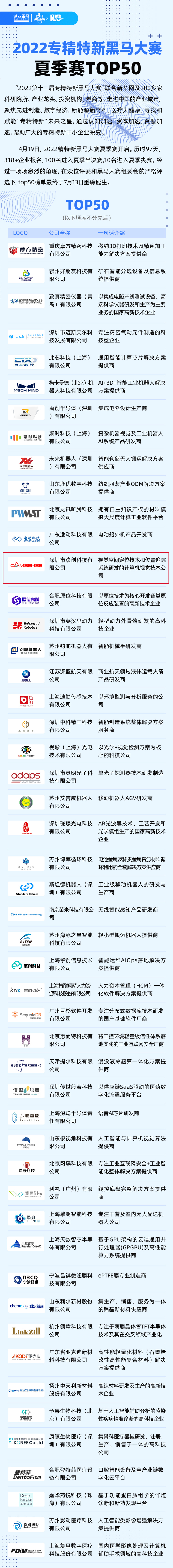 7月13日,“2022第十二届专精特新黑马大赛”夏季赛结果出炉,欢创科技荣膺TOP50榜单。