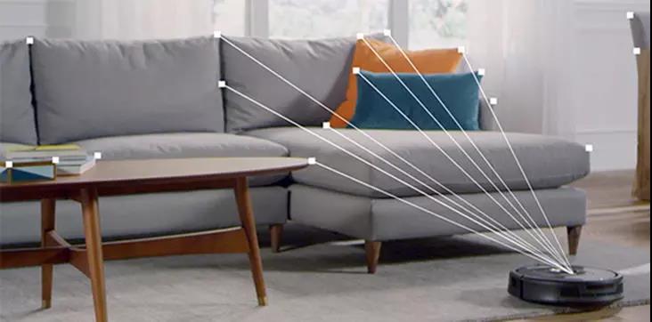 在扫地机器人领域,当下应用更多的是单目视觉技术,包括前文提到的科沃斯和小米的新款扫地机器人产品都加入了一颗可见光摄像头进行辅助定位,更好实现避障功能。国外对视觉导航应用较早的 iRobot 也是以单目摄像头在移动过程中对图像连续跟踪,进行相机姿态和跟物体之间相对位置变化的估计,从而建立起地图。