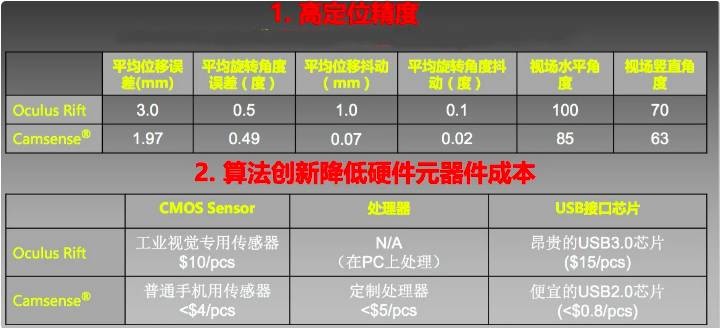 周琨告诉Xtecher,欢创科技是全球第二家采用单目实现VR三维空间定位系统的公司,并与采用同类方案的Oculus Rift进行过比对,在平均位移误差、平均旋转角度误差以及平均位移抖动、平均旋转角度抖动等指标上已优于Oculus方案,且硬件元器件成本更低。这套方案吸引了HTC的注意,HTC王雪红今年曾到访欢创科技进行考察